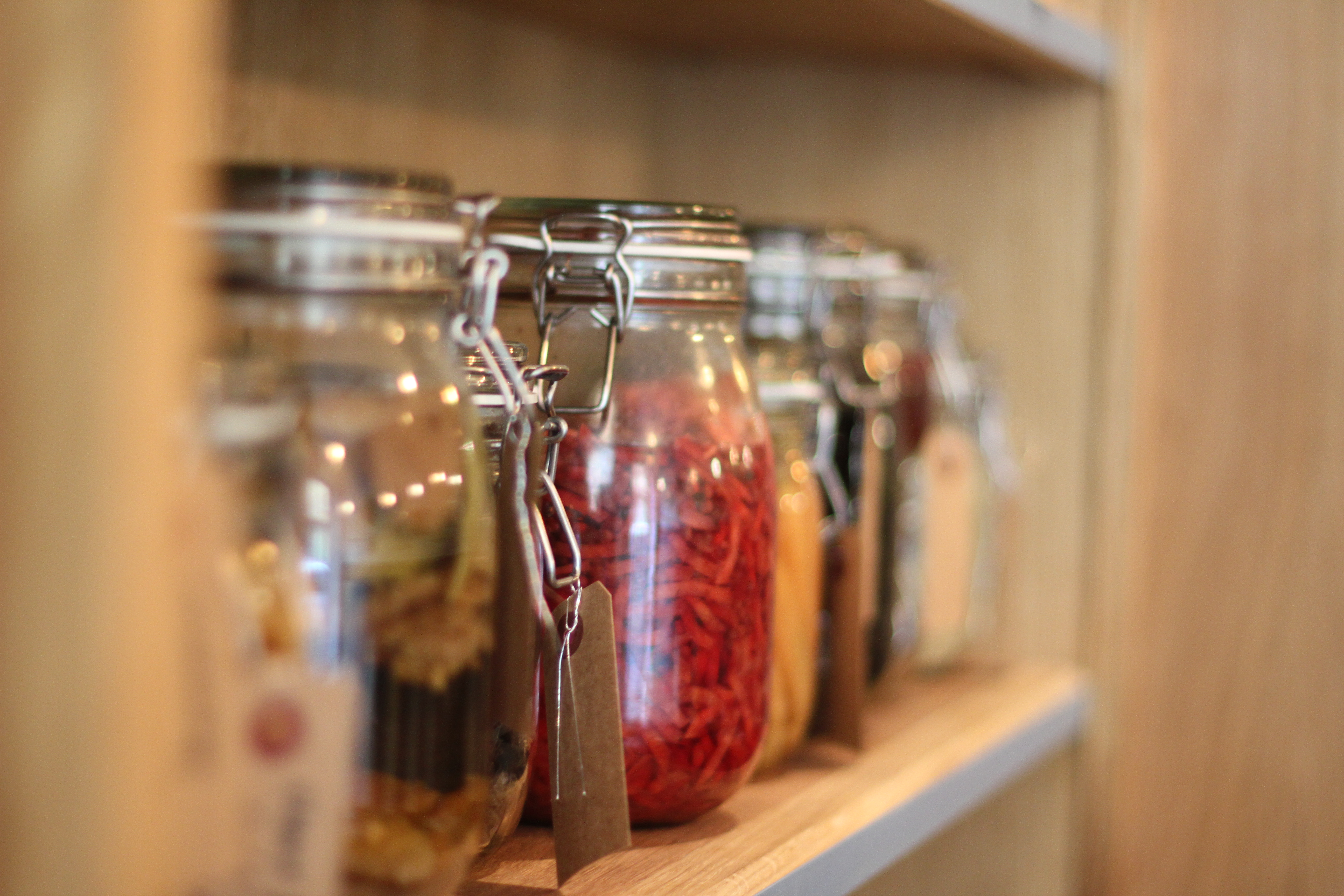 Le nom du restaurant fait référence aux gravures d’herbiers. La décoration, soignée, fait la part belle à un grand meuble rempli de pots en faïence (vides d’opium), de bocaux. Surtout, les Apothicaire fait écho à la cuisine végétale mis en avant par le jeune couple.