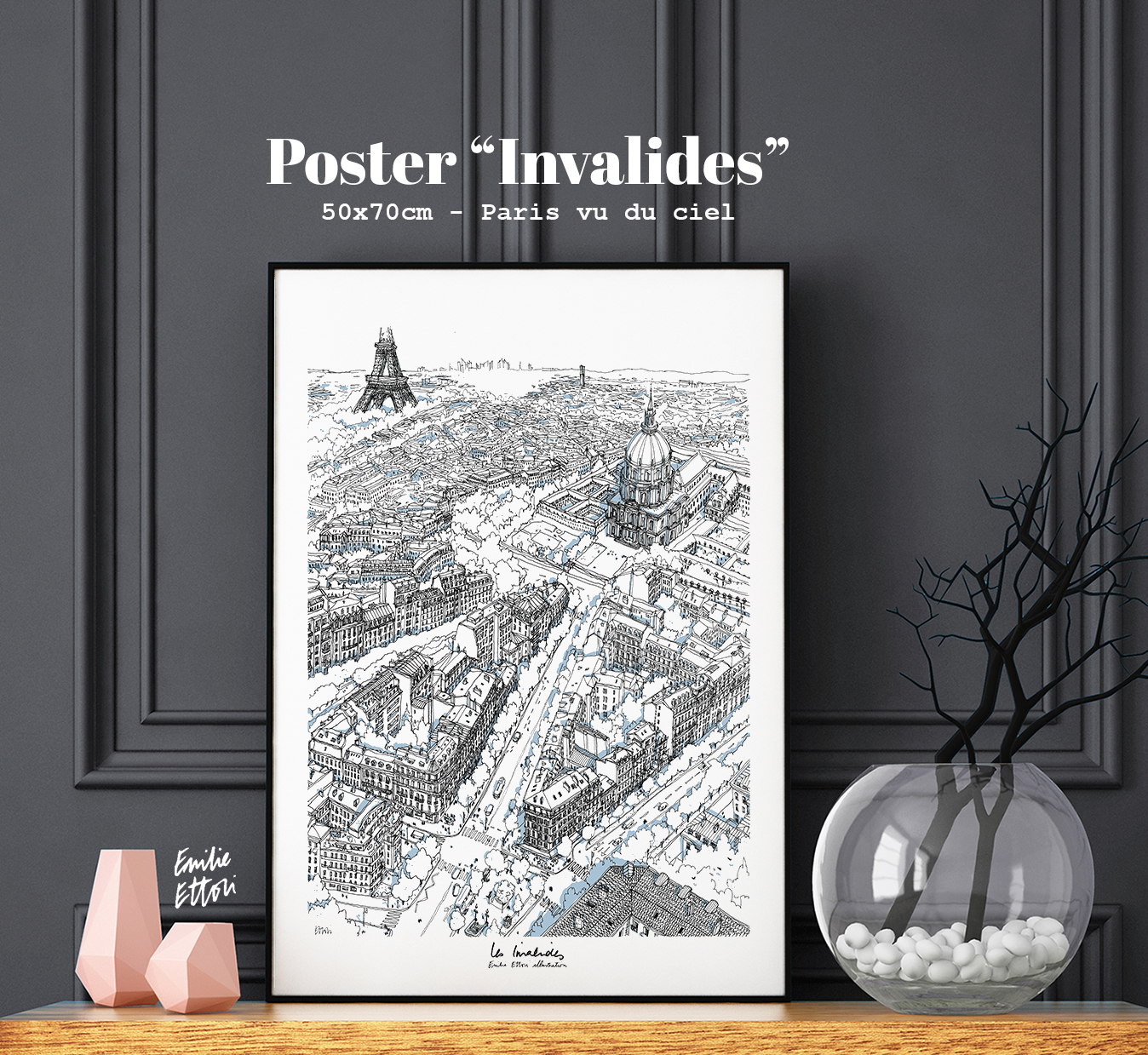 Je propose mes œuvres dans plusieurs formats. Le plus classique 30 par 40, mais également des posters plus grands, 100 par 70.