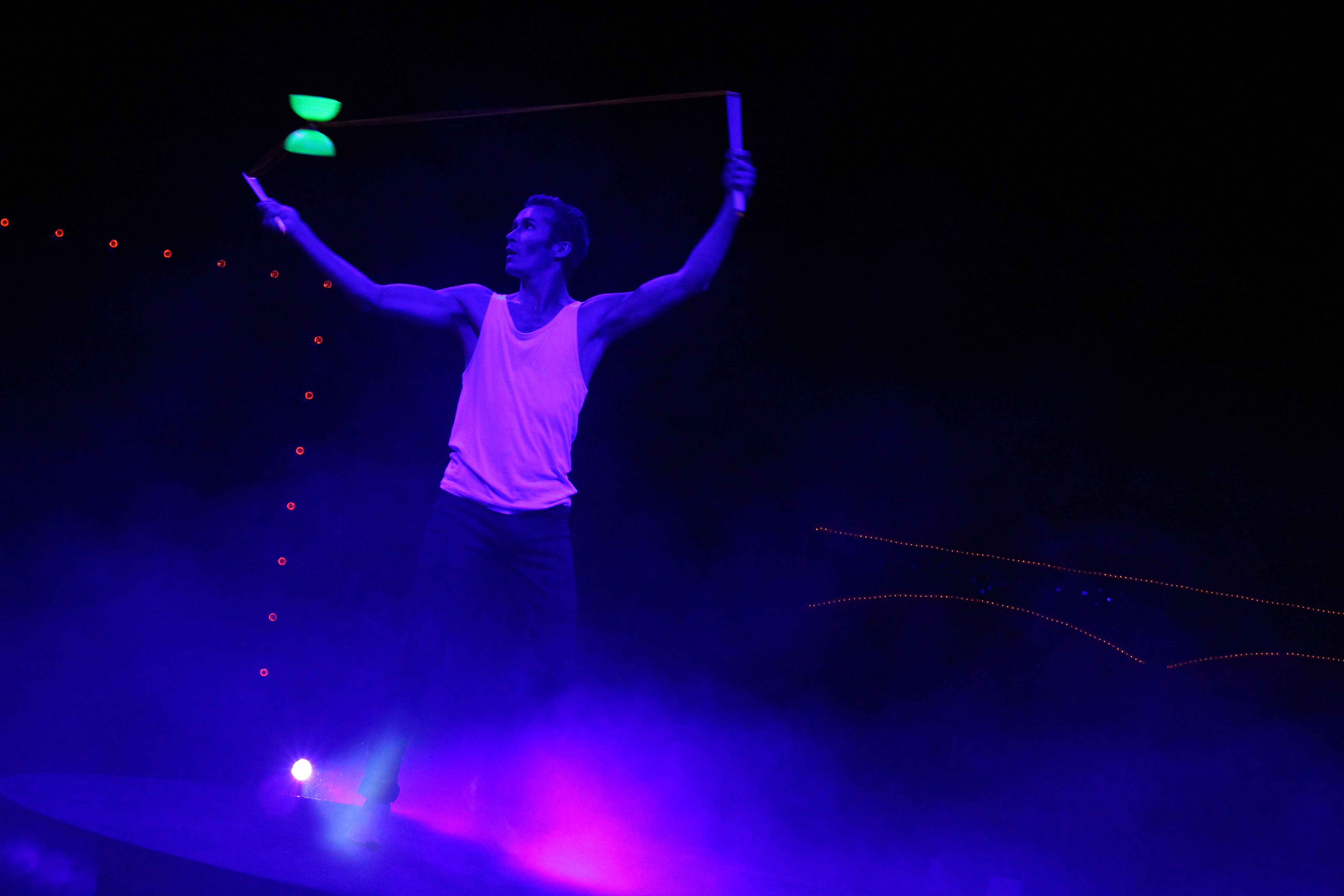Un couple d’acrobates ukrainiens sont en effet restés, ainsi que mon épouse Anastasia et moi-même. Ces derniers proposent désormais un numéro avec un trapèze giratoire, qui se marie parfaitement avec l’univers circulaire dans lequel nous évoluons. Autre artiste à intégrer la troupe : Yohann qui apporte une touche moderne au cirque avec son numéro de diabolo. Il a été découvert dans l’émission la France a un incroyable talent. Et puis le spectacle s’ouvre avec un numéro spectaculaire de globe ex plexiglas, qui dévoile une acrobate. Autre nouveauté : Anna, une artiste qui dessine Edith Piaf sur du sable, le résultat étant retransmis en direct sur écran.
