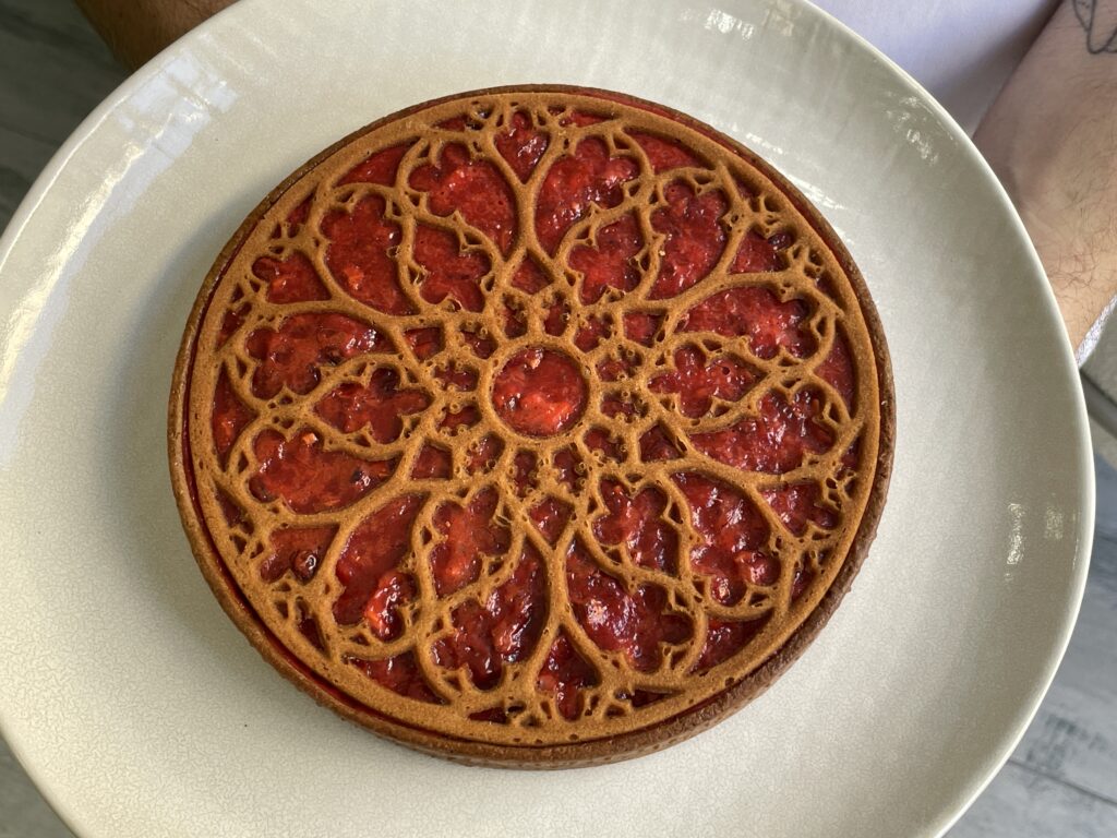 Thomas Dura a remportĂ© la « Praline d’or » lors du mondial de la Praline organisĂ© Ă Lyon. Une distinction qui devrait lui valoir un afflux de nouveaux visiteurs dans ses deux boutiques. CommercialisĂ©e depuis plus d’un an, la « meilleure tarte Ă la praline du monde » tĂ©moigne d’un grand soin apportĂ© aux dĂ©tails. Les pralines sont conçues par le chef pâtissier, qui a veillĂ© Ă un travail prĂ©cis sur le pourcentage de sucre employĂ© afin de proposer une tarte peu calorique et lĂ©gère. Autre secret : une pâte sablĂ©e travaillĂ©e. L’esthĂ©tique fait Ă©galement partie intĂ©grante du processus, avec une reproduction du vitrail de la CathĂ©drale Saint-Jean. Le rĂ©sultat : « une tarte très onctueuse et peu sucrĂ©e » comme l’explique Thomas Dura. Ce dernier aime beaucoup la compĂ©tition et il avait Ă cĹ“ur de participer Ă l’édition 2025.