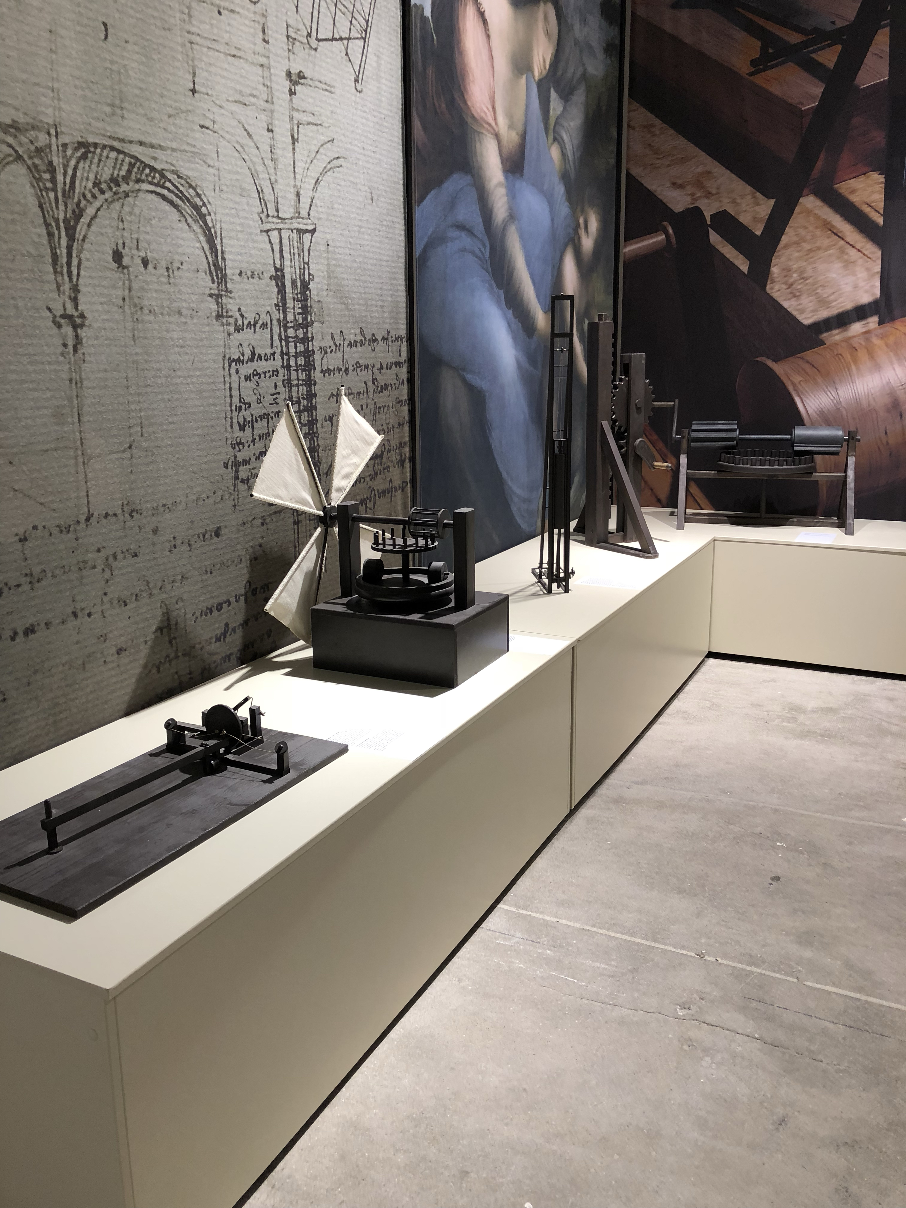 La scénographie met en avant essentiellement des reproductions en bois, des ponts aux instruments de musique en passant par des tableaux. L’occasion d’apprécier toutes les facettes de Leonard de Vinci, qui  considérait toute de même la peinture comme l’art suprême. Un excellent observateur donc, mais loin d’être le visionnaire que l’on a longtemps présenté. Léonard de Vinci n’a jamais rien inventé. Ni l’avion. Ni la voiture. Ni le vélo.