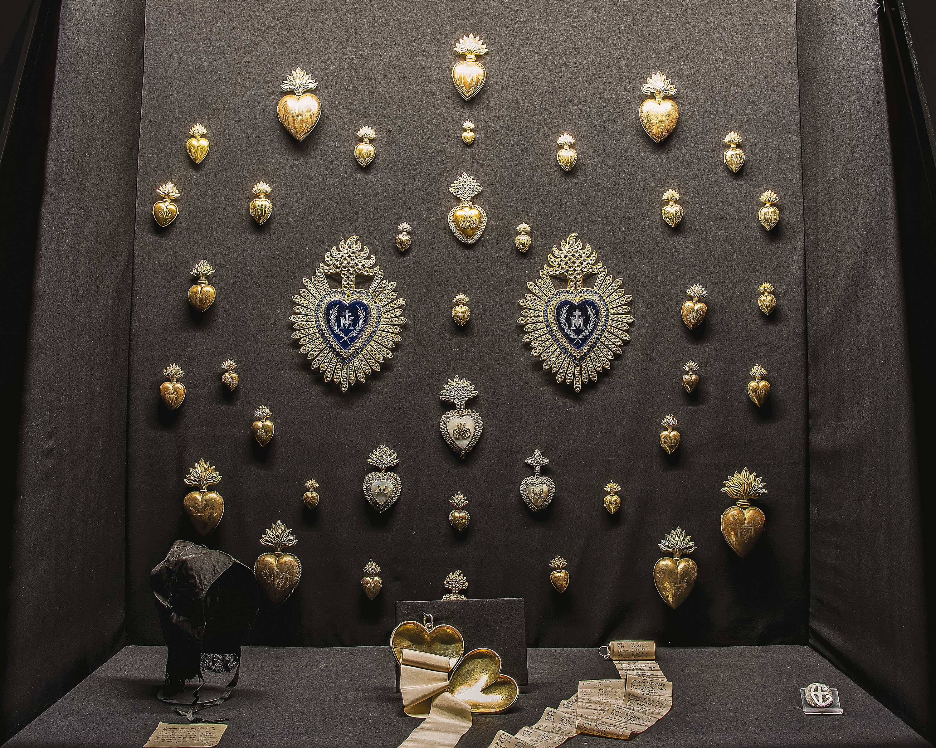 Pièce-maitresse de cette exposition, la Couronne de la Vierge, offerte par les lyonnais en 1900 à l’occasion du couronnement de la Vierge de la Basilique. Autre pièce extrêmement modeste mais néanmoins émouvante, l’ex-voto qu’une communauté Maori a apporté à Notre-Dame de Fourvière en 2005. L’occasion de démontrer le rayonnement international de la Basilique aux 4 coins de la planète. L’exposition présente une symbiose de symbolisme et de réalité historique à la gloire de Marie. Elle aide le pèlerin ou le simple visiteur à comprendre l’édification de ce monument extrêmement riche.