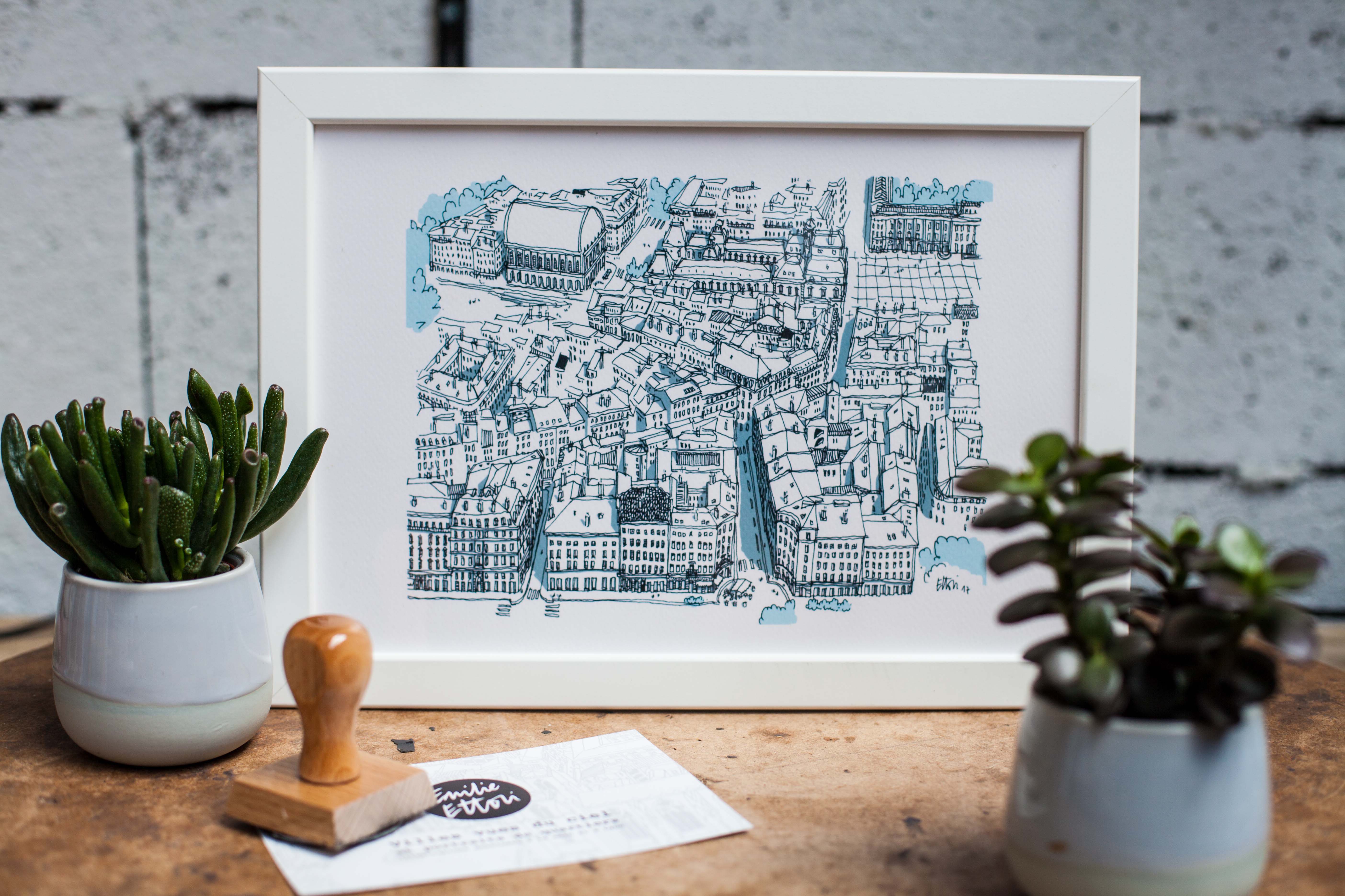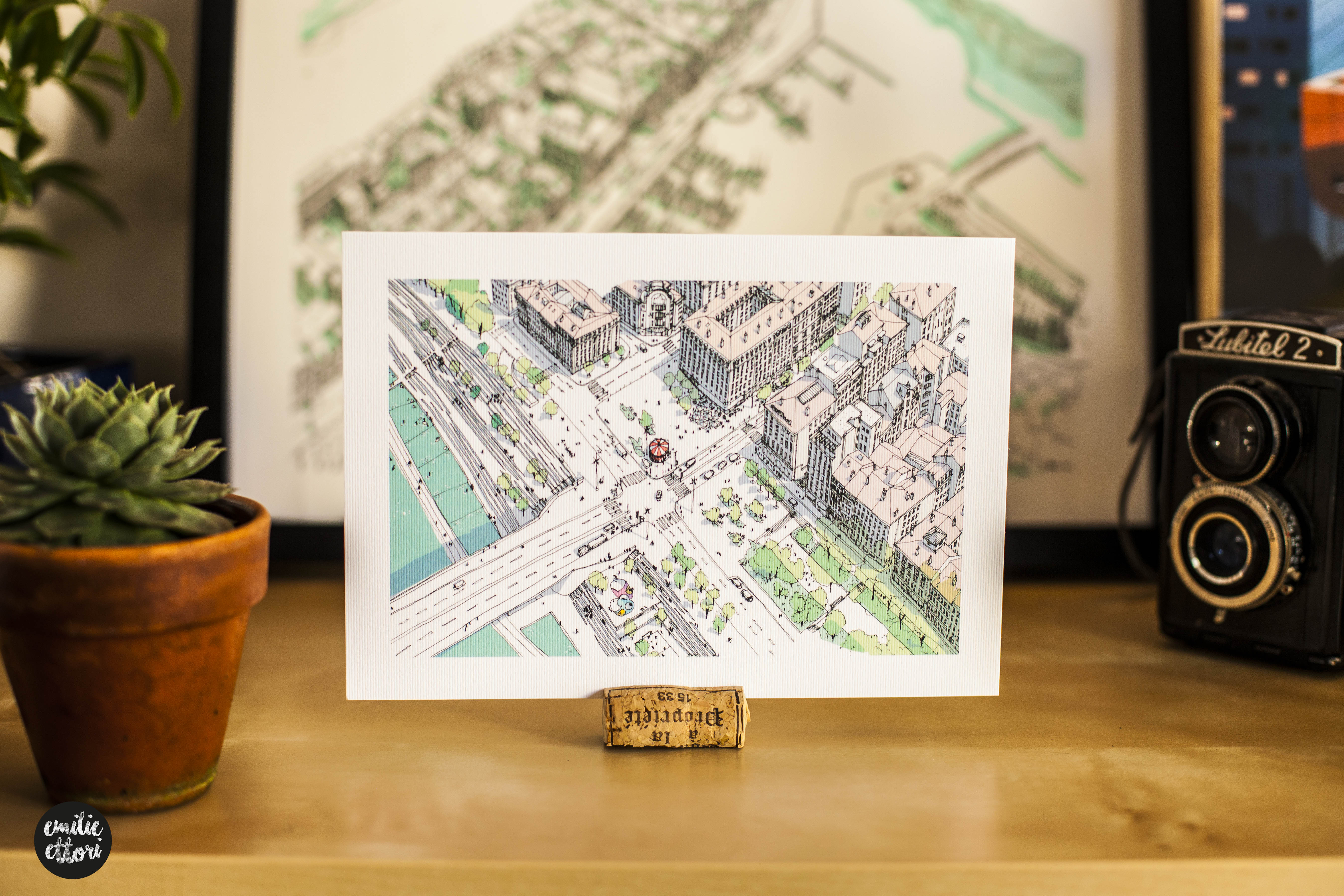 En effet, j’ai dessiné d’autres vues aériennes de villes comme Paris, Dieppe, Bordeaux ou Lille. Je ne réalise plus de commandes sur-mesure, car cela me prend trop de temps. En tout cas ce qui me fait très plaisir, c’est de constater que les personnes sont très attachées à leur ville natale, il y a un côté très affectif avec le lieu où l’on vit ou celui où l’on a vécu.