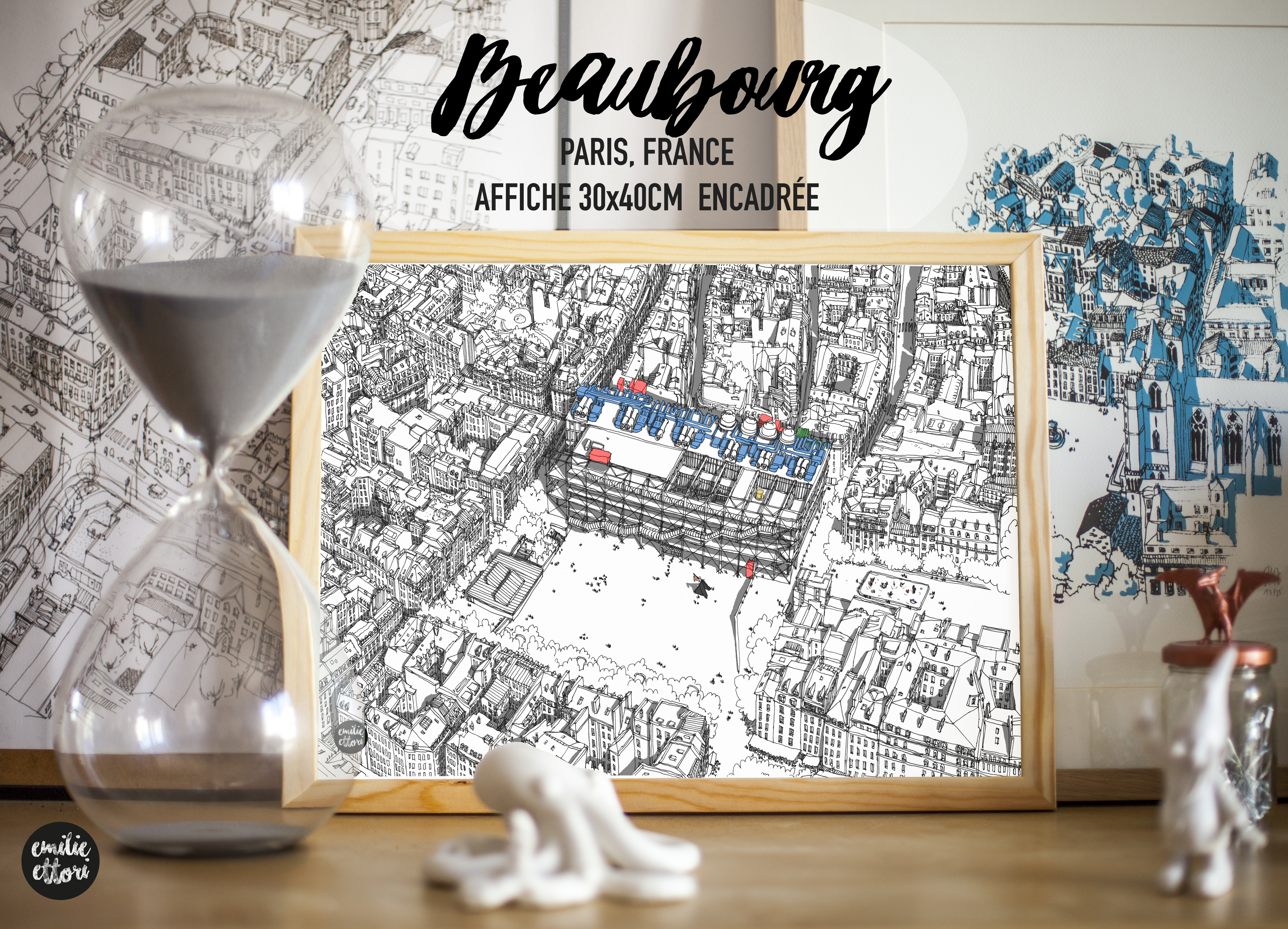 Je propose mes œuvres dans plusieurs formats. Le plus classique 30 par 40, mais également des posters plus grands, 100 par 70.