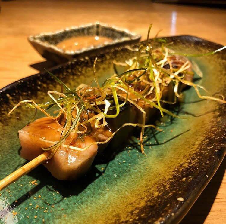 On se délecte également de l’omelette sauce ponzu, des Rolls d’algues wakamé au coeur de concombre, de l’échine de cochon frites au panko, du sashimi de saumon et des petites brochettes.