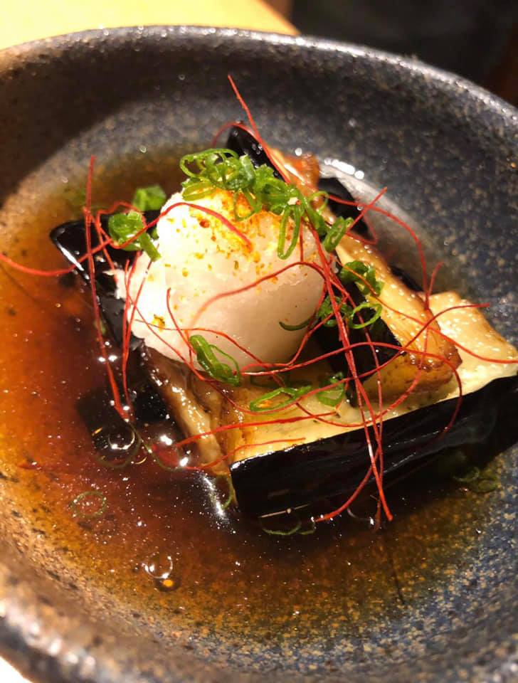 Même les Vegan y trouveront leur compte avec des aubergines confites, accompagnées d’un bouillon de poisson aux champignons.