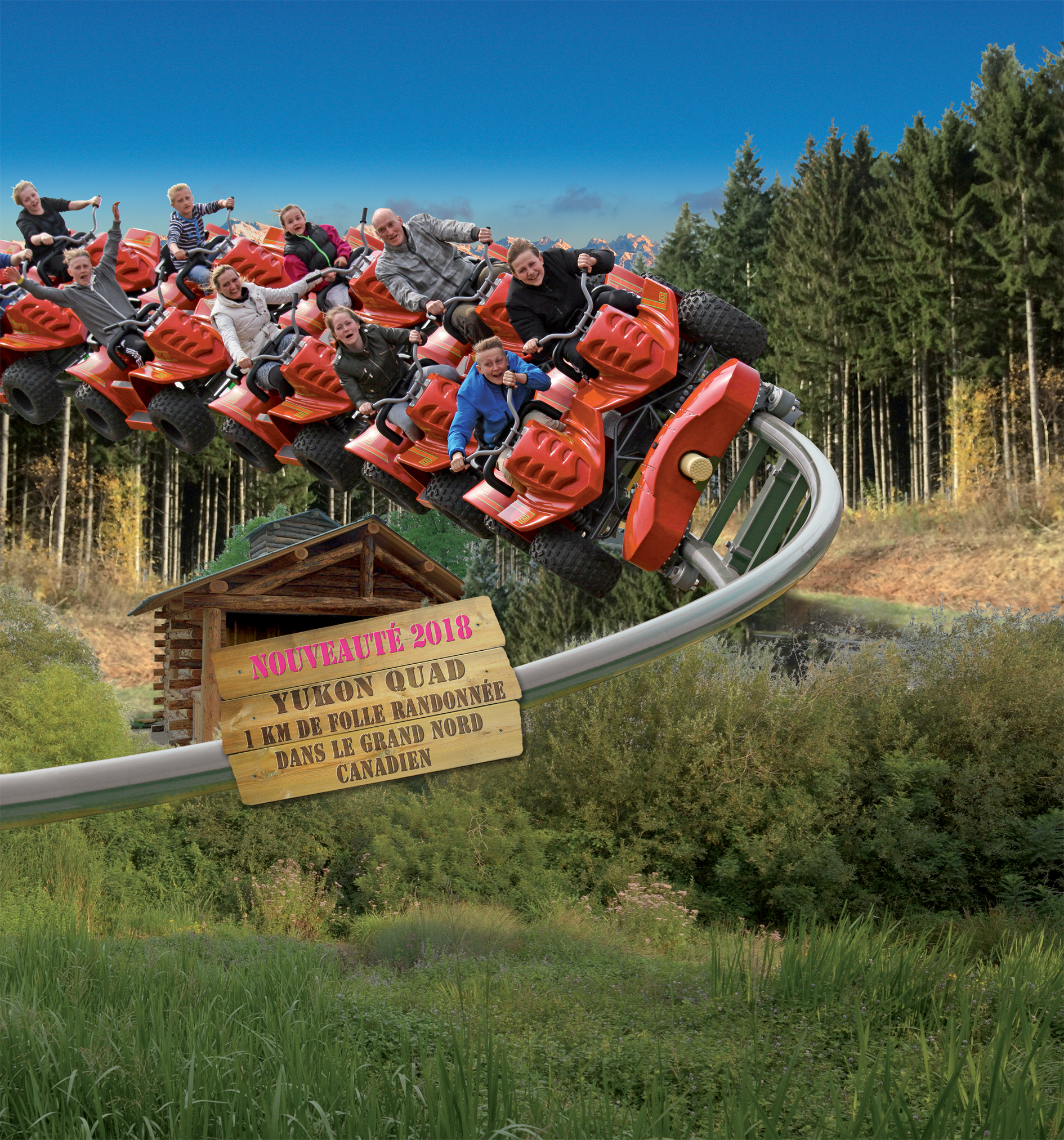Le YUKON QUAD est une attraction du type roller-coaster (grand huit) unique en France. Destinée à un public familial elle est animée par 2 lanceurs qui propulsent des Quads à une vitesse maximum de 90km/h. Accrochés au guidon de leur véhicule tout terrain les passagers traversent demagnifiques paysages du nord du Canada et enchaînentles virages, les montées et les descentes spectaculaires sur un parcours d’1km. Fabriquée à 3 exemplaires dans le monde, le YUKON QUAD sera la 2ème version réalisée en Europe et la plus grande attraction jamais construite au PAL. Une aventure exceptionnelle pourtoute la famille ! 1km de folle randonnée dans les grandsespaces du grand nord canadien.
