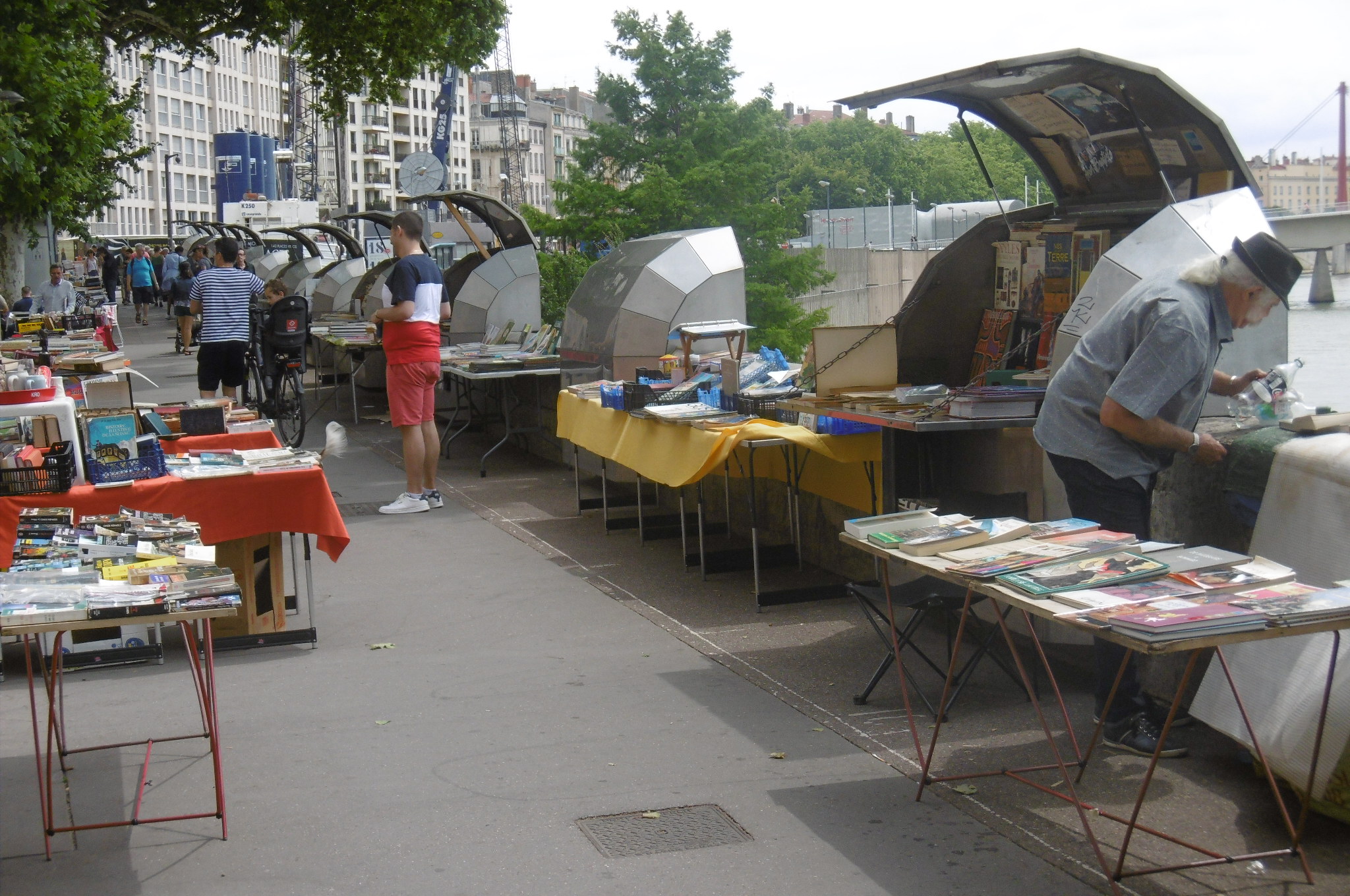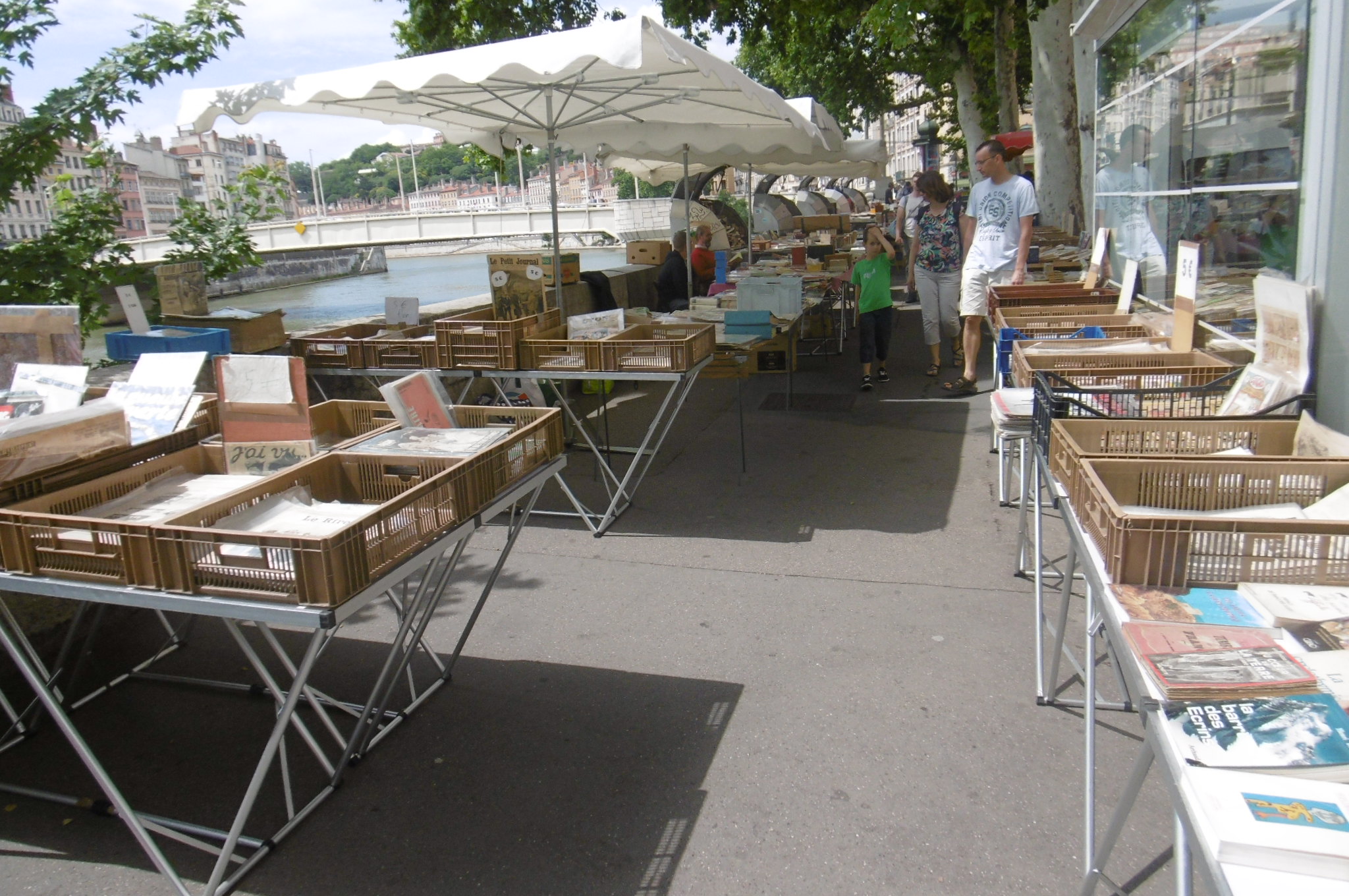 Vous promenant le long de la Saône, vous avez certainement aperçu ces  boîtes métalliques fixées au parapet du quai. Elles sont fermées ou bien ouvertes, débordant de livres, de revues d’occasion. Elles s’offrent aux regards des passants et des chineurs qui peuvent venir chercher là un ouvrage ancien ou un souvenir de Lyon. Faisons ensemble un tour géographique et historique de cette étrange profession…