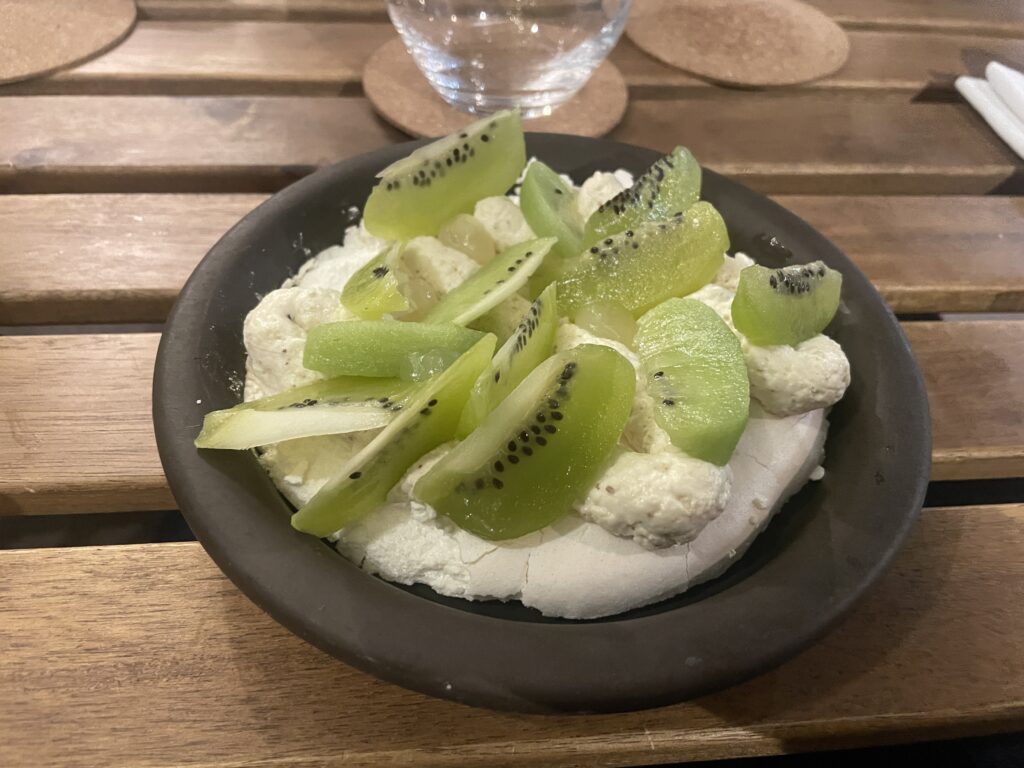 Mais le summum de la surprise vient au dessert avec une Pavlova Kiwi et gel citron, au goût anisé. Le secret ? Un peu de fenouil. Jamais écœurante, pas trop sucrée. Un délice subtil qui vient parfaire notre expérience enchanteresse.
