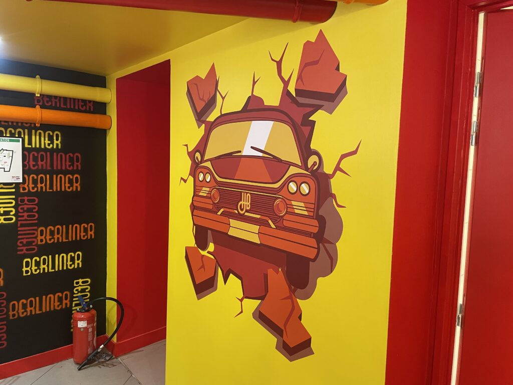 Le dernier né affiche des couleurs flashy et rétro, avec une déclinaison bicolore jaune et rouge. Les visuels jouent à fond la carte de la nostalgie, entre les voitures Trabant, la Mosquée Bleue et la capitale allemande.