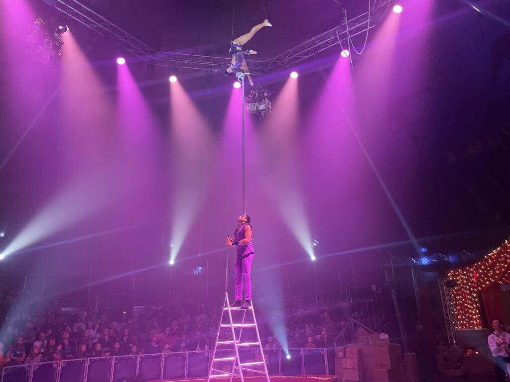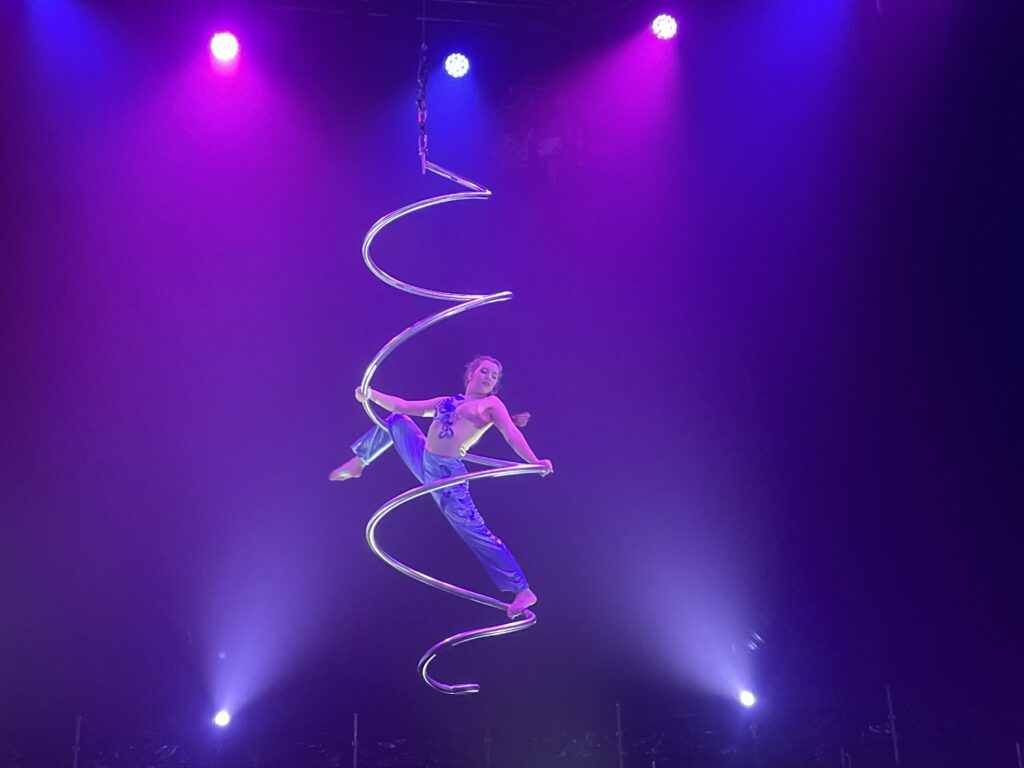 Cela demeure d’autant plus remarquable que certains artistes demeurent très jeunes, à commencer par les enfants des fondateurs (Tom, Alicia et Victoria), qui présentent des voltiges spectaculaires. Mention spéciale à Victoria qui, à 15 ans à peine, virevolte autour d’une spirale sur la musique hypnotique de Grandbrothers. Frissons garantis.