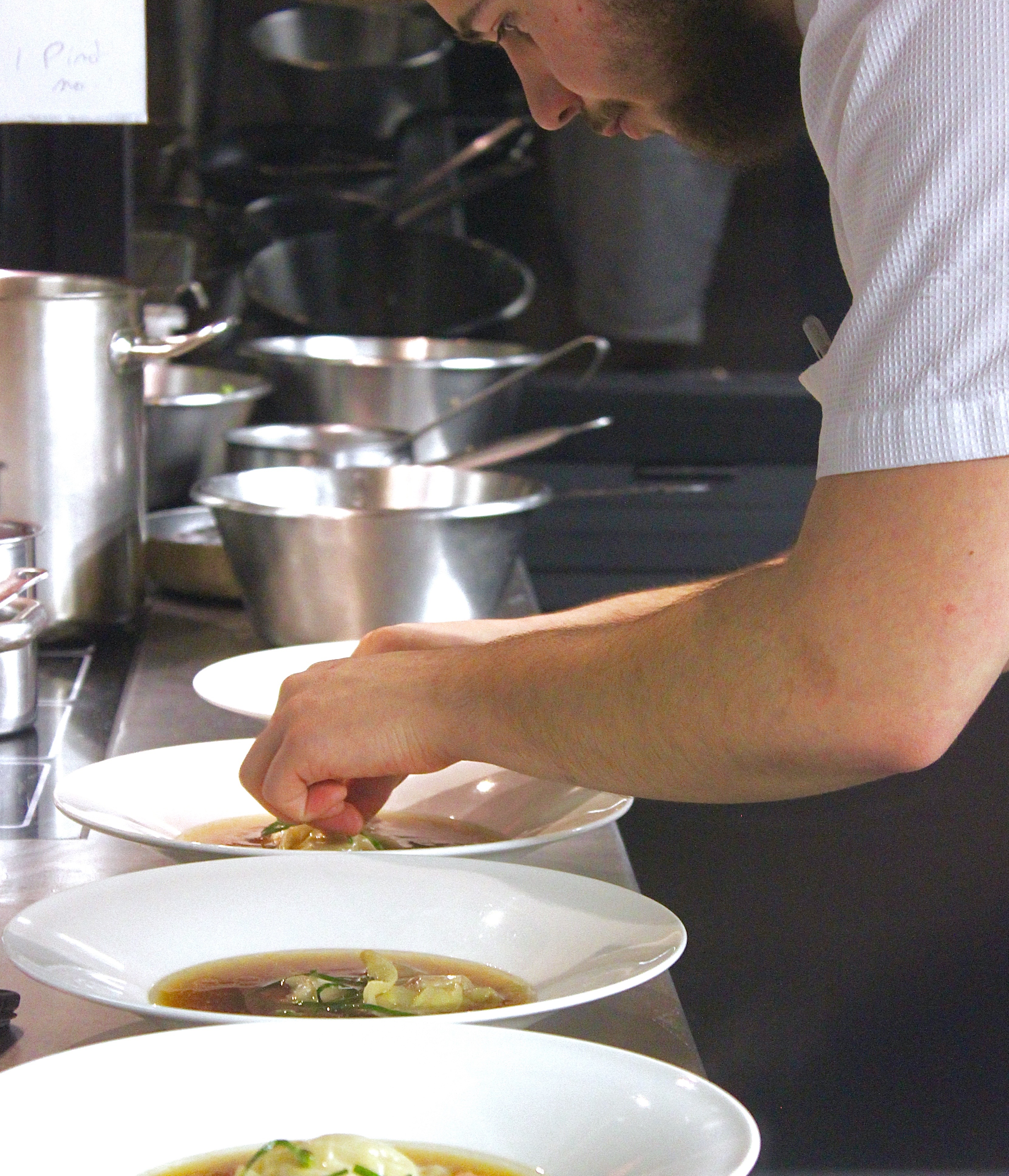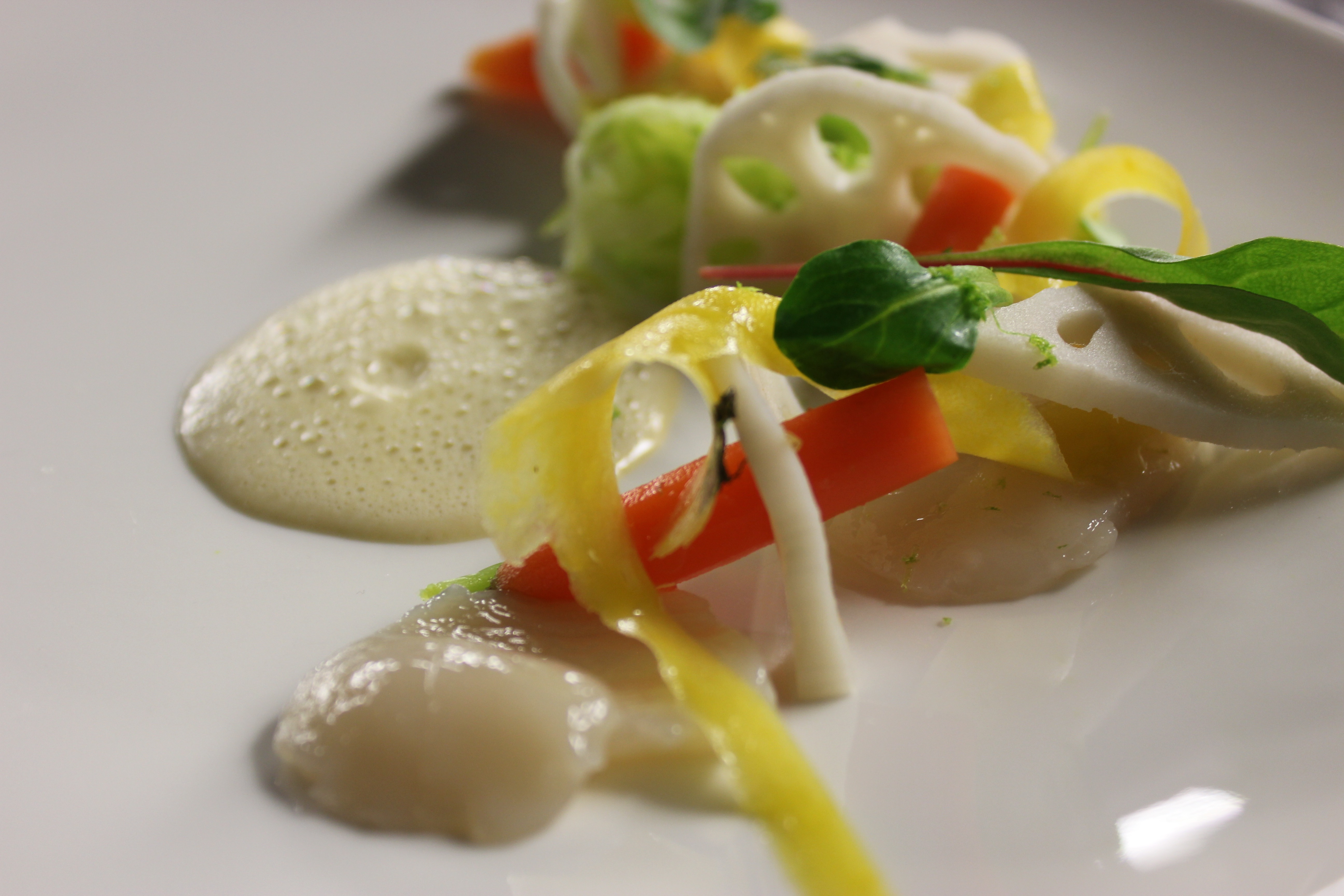 Le saumon fumé fond sous la langue, accompagné d’une délectable crème de saint-jacques au radis noir. Comment ne pas succomber également au Tataki de thon rouge parfaitement cuit, relevé par une purée de pommes de terre au yuzu-kosho ? Le kosho est un condiment à base de yuzu et de piment. Le dessert (Yuzu curd et son sorbet yuzu) vient parachever cette impression de sans-faute !