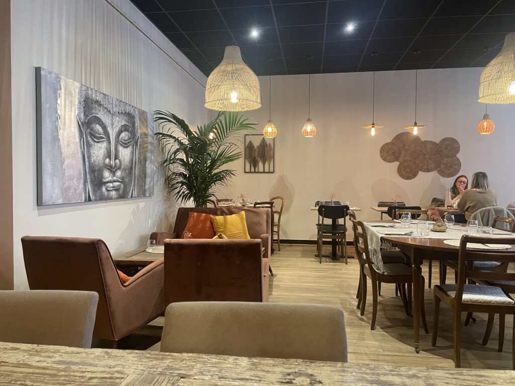 Pendant plus de sept mois, le couple a rénové entièrement le lieu. Résultat : une salle chaleureuse, décorée avec goût, où alternent différents styles de tables, luminaires raffinés (AMPM), mobilier chiné — dont une table basse venue de Macao — et un petit salon privatisable au fond pour des moments plus intimistes.