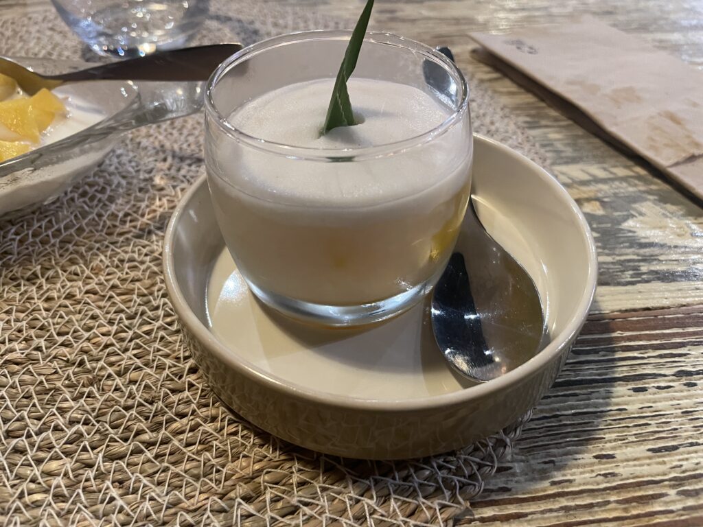 Mention spéciale au dessert : le khao niew mamuang, perles de tapioca au lait de coco et mangue fraîche, un régal.